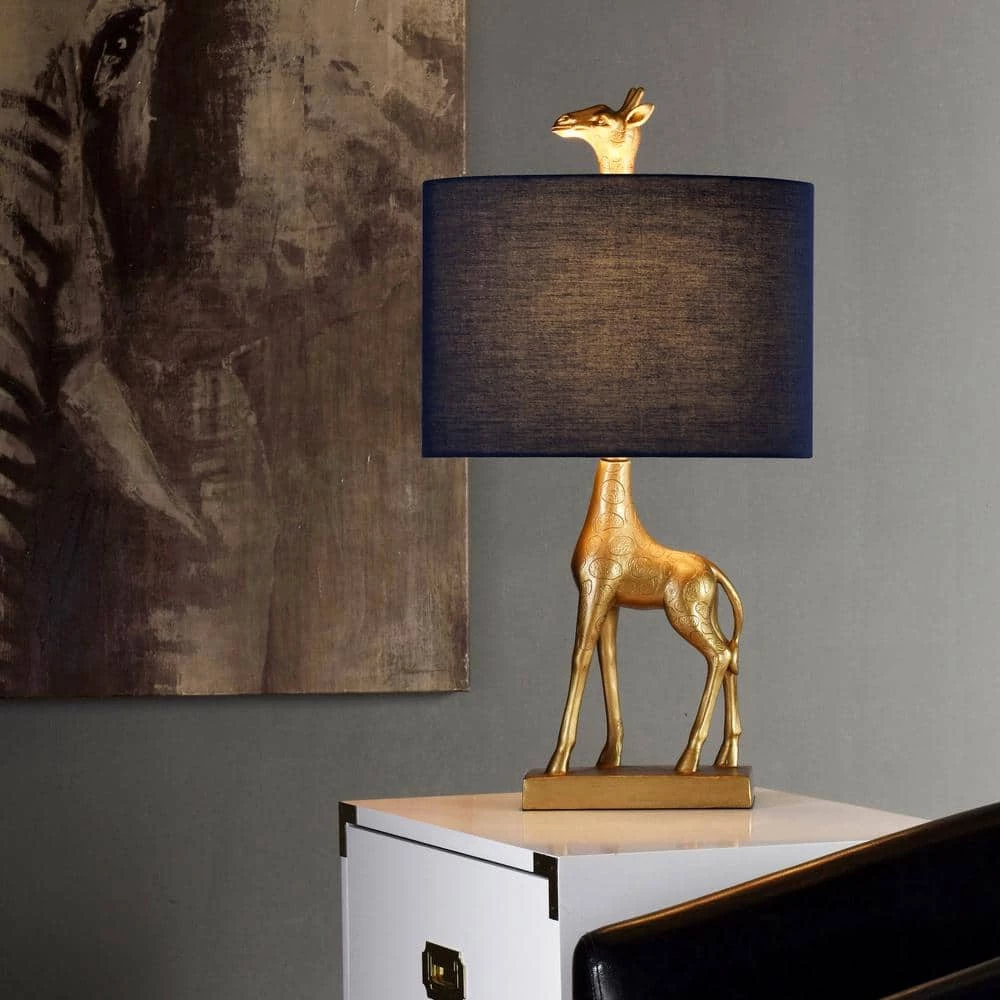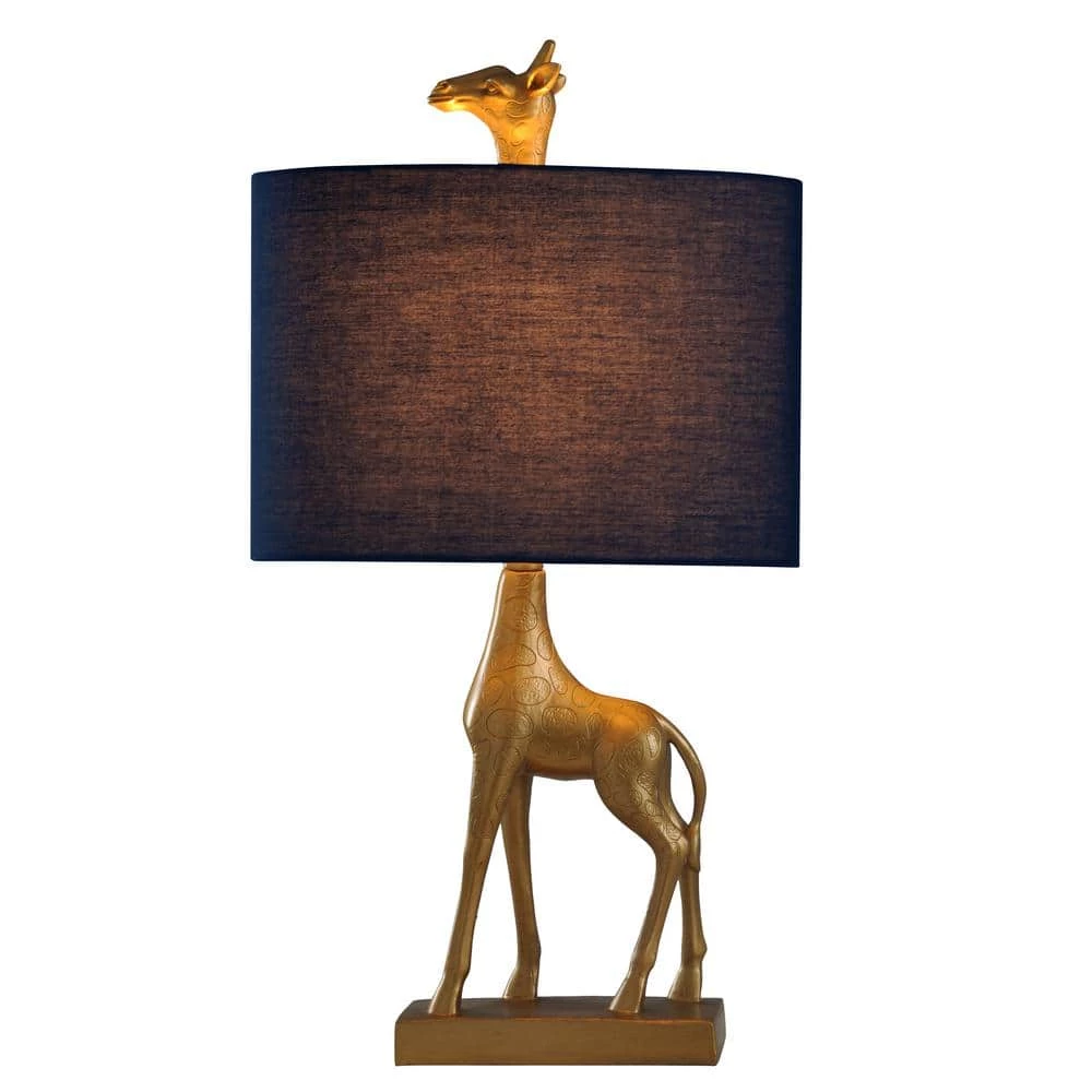 Giraffes are majestic creatures and you can bring a touch of that majesty into your family room with the Golden Giraffe table lamp. The finish on the poly resin giraffe is solid gold, so you will feel like royalty with this fixture in your home. The giraffe’s head sticks out of the oval, hardback shade made from styrene.