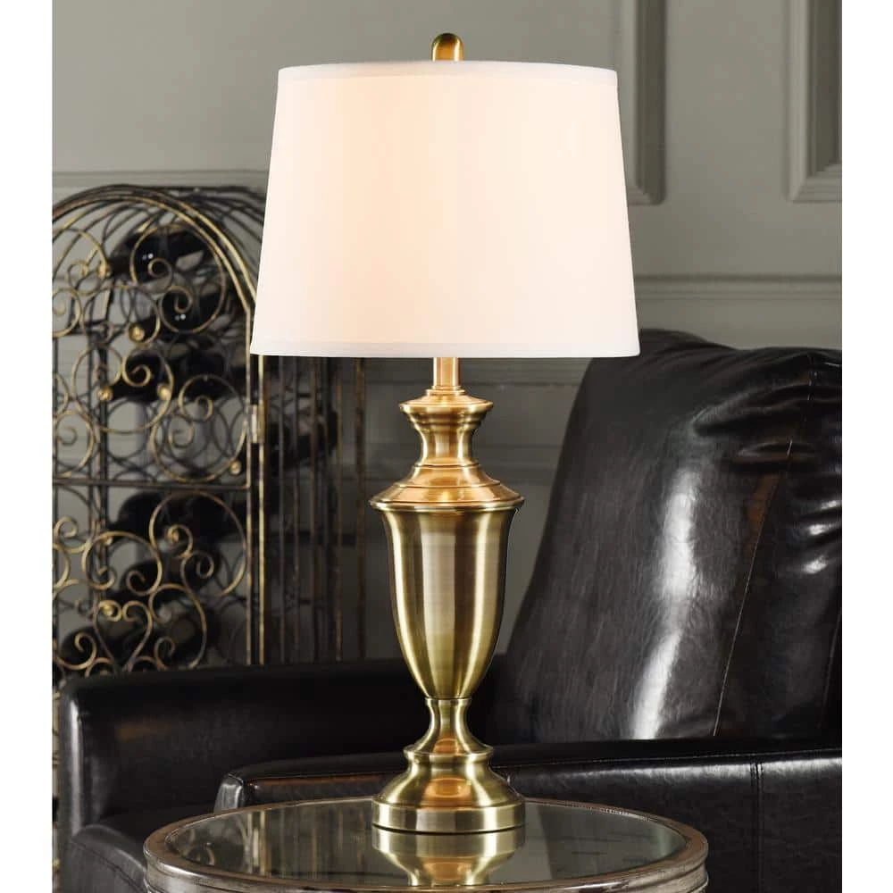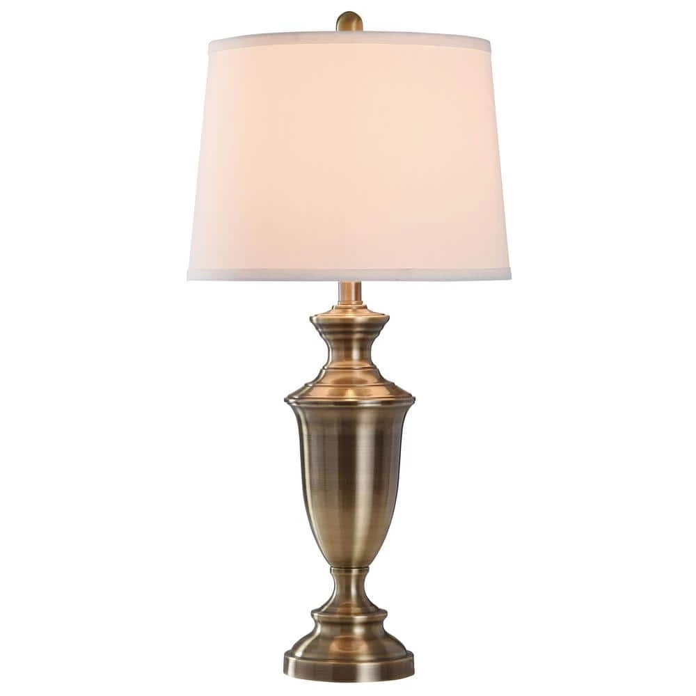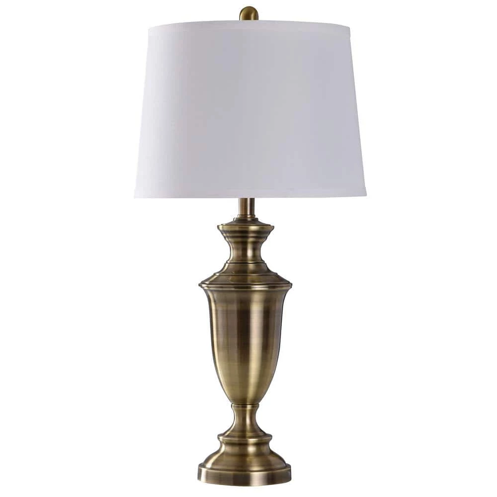 The beautiful Steele table lamp elevates the status of any room it is in from the living room to the master suite. The antique brass finish on the steel body makes it blend in seamlessly with any vintage decor. The glow of the light will shine through brilliantly through the hardback shade.
