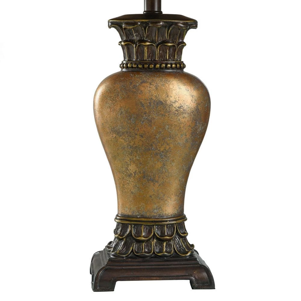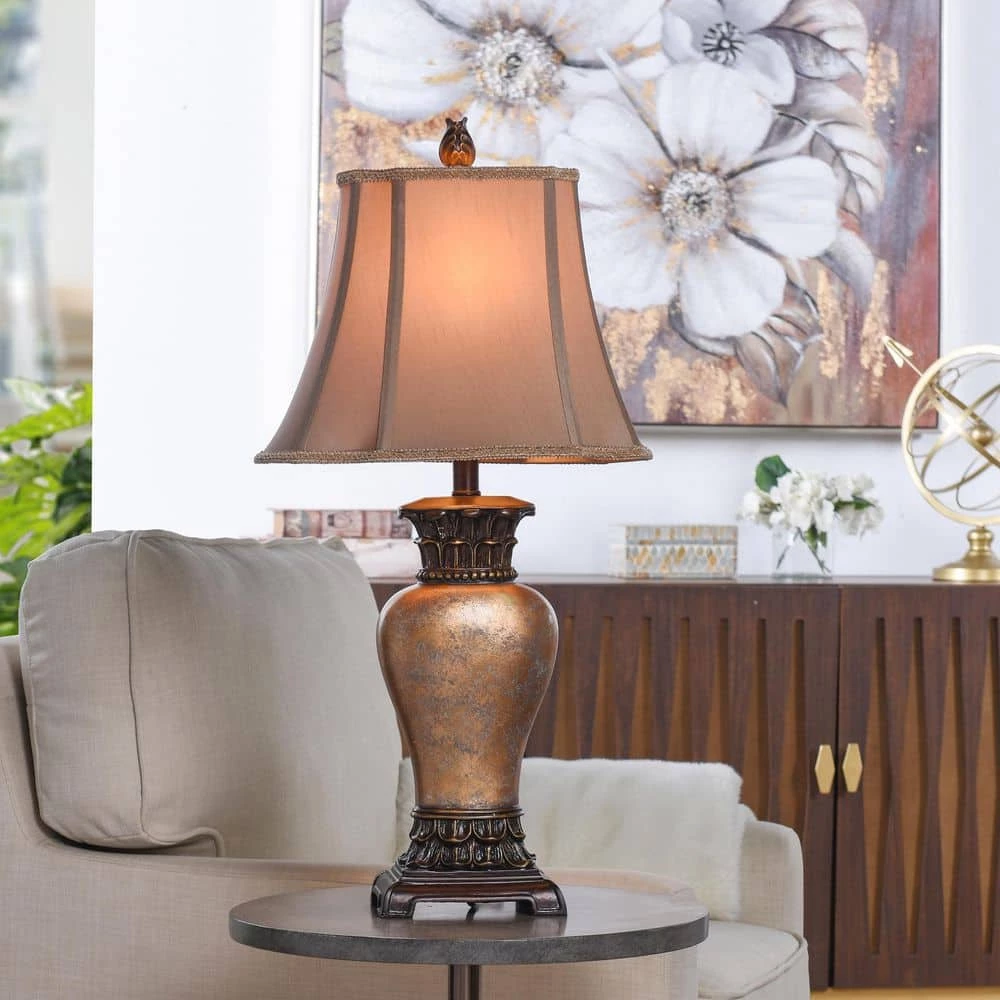 This poly table lamp is truly a remarkable piece. The subtle curvature make it stand out in a master suite. It features a rectangular, footed base as well as an orb socket and brown cord.