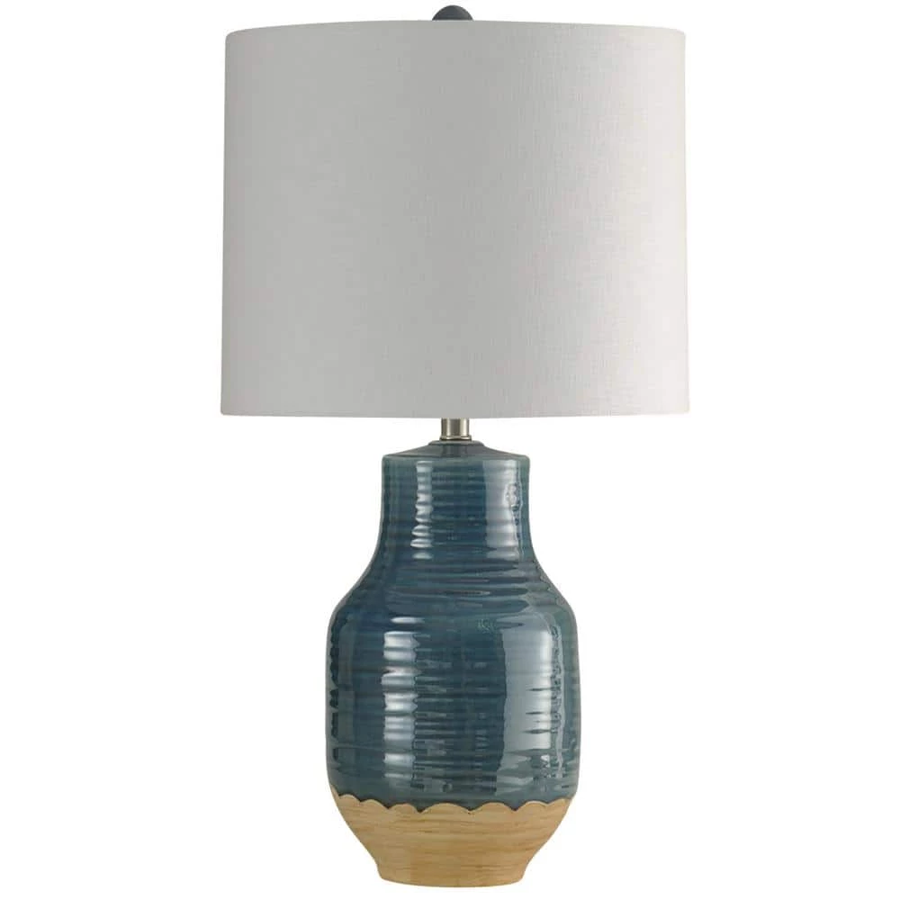With its three-way operation and gorgeous blue color, this table lamp brings stylish illumination to any space: hallway, bedroom, living room, office, or dining room. The ceramic frame features a dual finish that’s blue with a beige accent at the bottom. A white hardback shade completes the beautiful look of this ceramic table lamp.