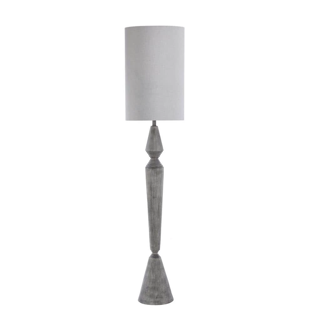 A modern floor lamp that brings statuesque style to your contemporary living or dining room. This elegant fixture features a polyresin frame that’s beautifully detailed and finished with a gray faux-wood coloring. A light gray linen shade complements the body, while a clear cord and an on/off switch at the base of the lamp provide discreet functionality.