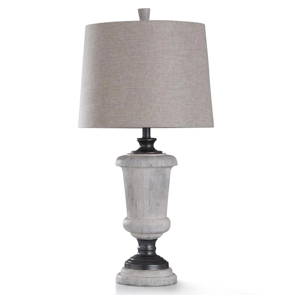 Introduce a splash of beauty to your office, bedroom, hallway, or living room with this light gray stone and gunmetal Cinderford table lamp. The traditional Colonial stone style uses gunmetal finished accents, a matching finial, and a hardback beige linen shade. Plus, there is a 3-way switch to help ensure your space will always be flooded with the perfect amount of ambient light.