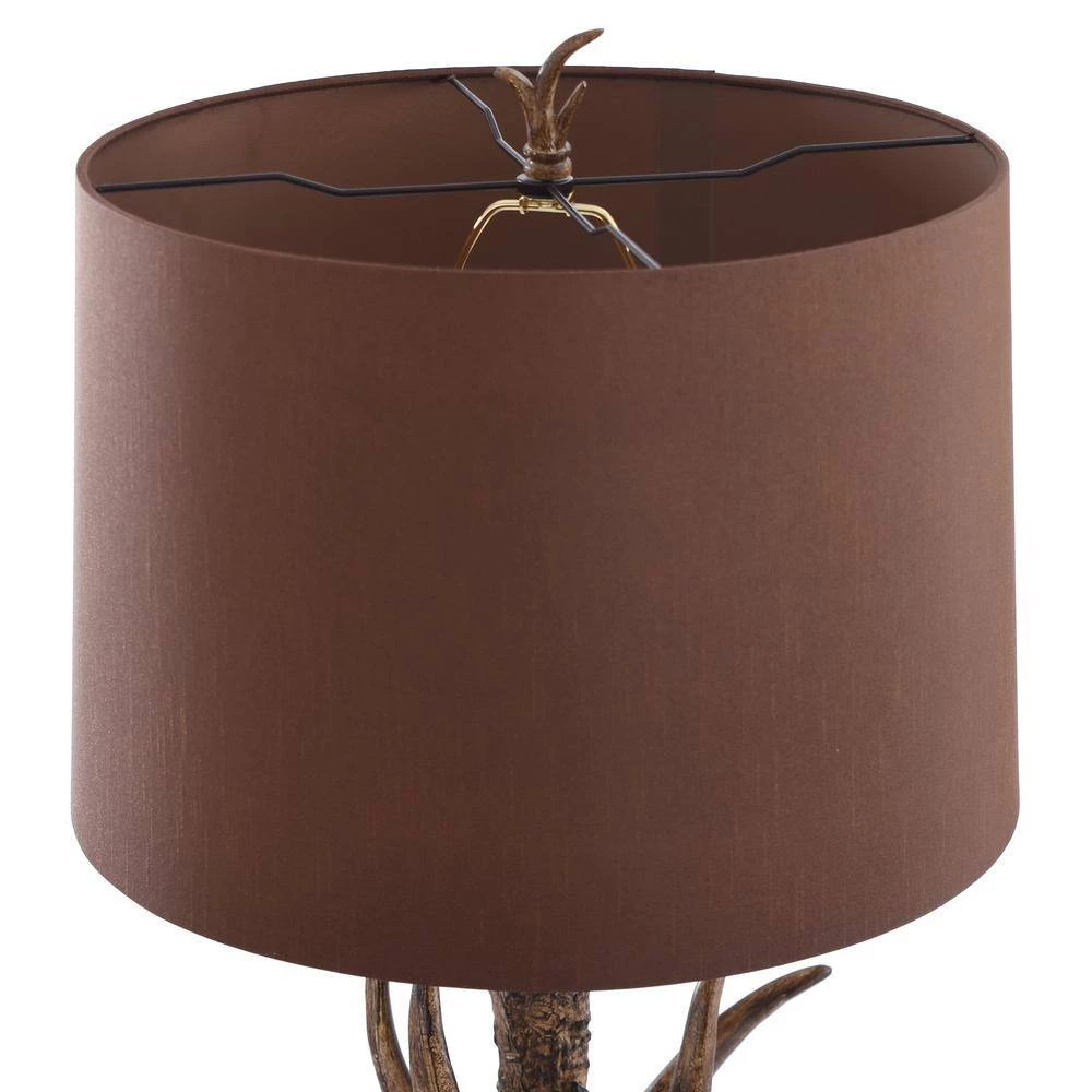 - Lamp shade is made of hardback fabric with chocolate color finish