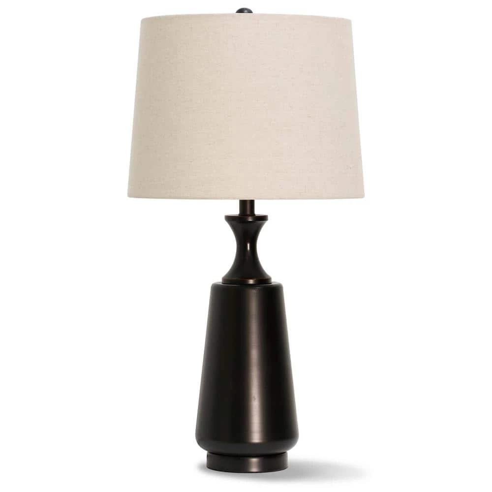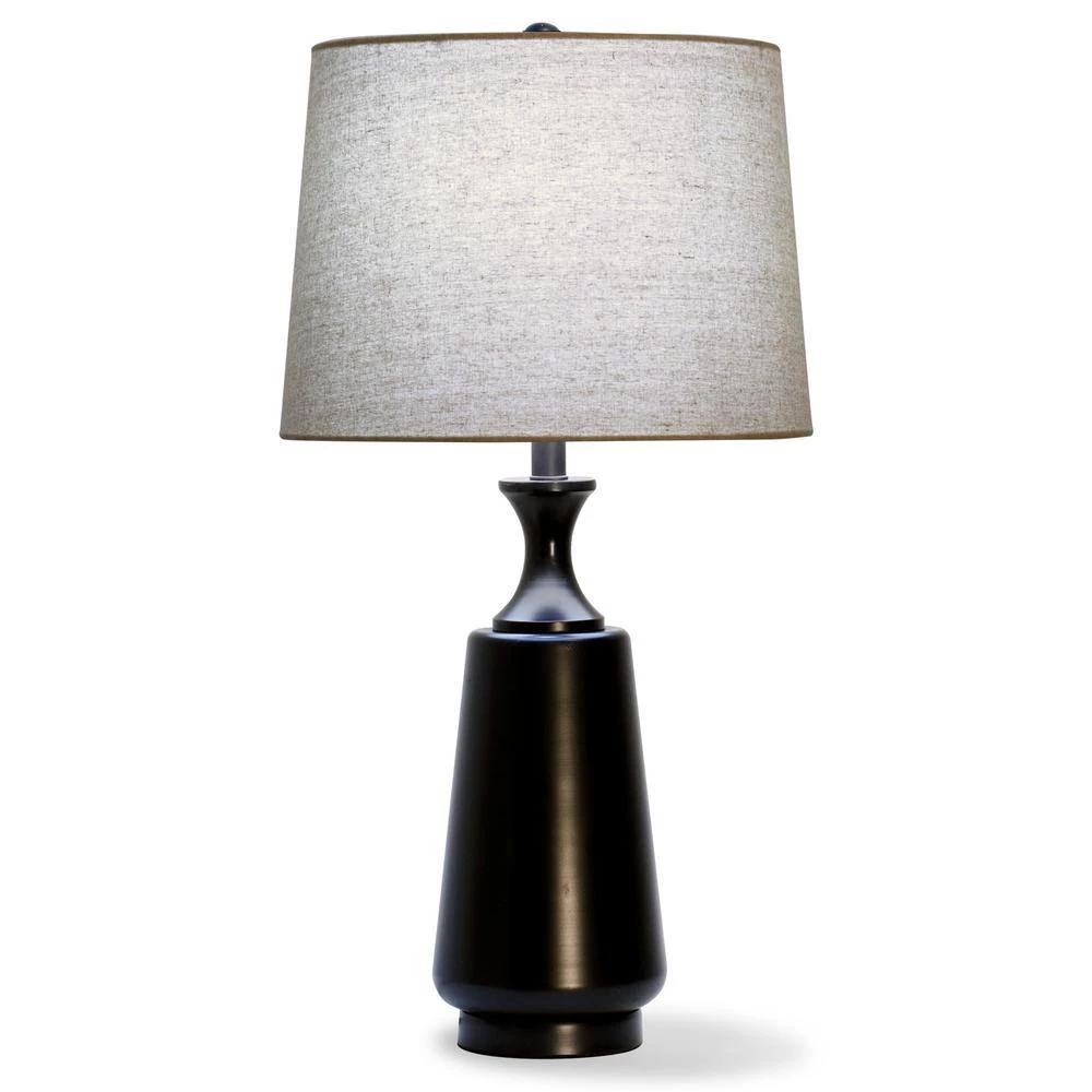 Dark and conservative, this table lamp boasts an oil-rubbed bronze metal body with a clever TOUCH technology base. The ease and sophistication of this piece is perfect for adding style and function to a home office or living room. Paired with a beige linen hardback shade, this lamp is both elegant and innovative.