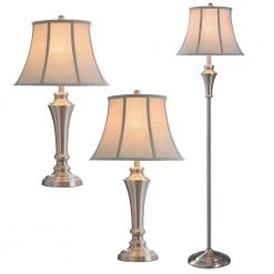 61 in. Brushed Nickel Table and Floor Lamp Set (3-Piece) by StyleCraft