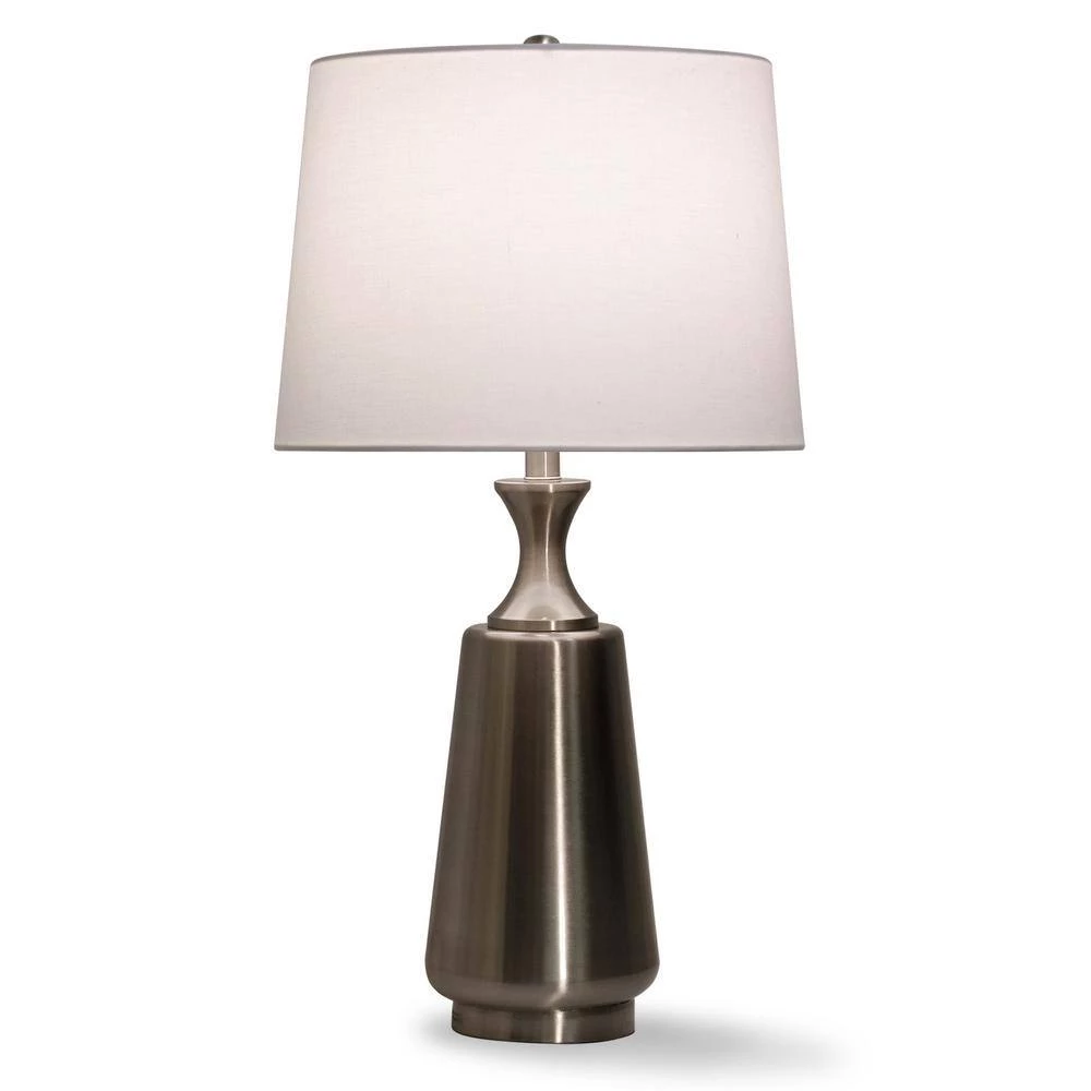 The brushed-steel body of this charming table lamp is perfectly complemented by the white linen hardback shade. An essential addition to any space in need of hassle-free lighting, this table lamp features TOUCH technology, which means it only takes a soft tap to flood your space with the optimal amount of light. Talk about convenience and style.